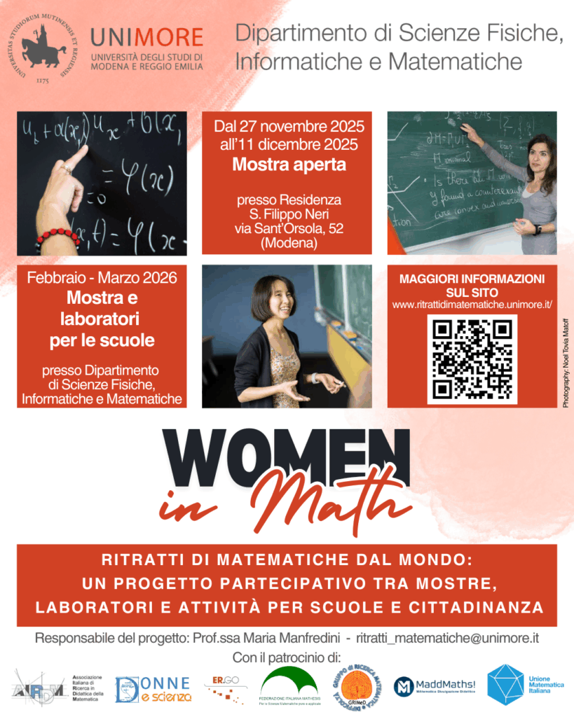 L’obiettivo principale è valorizzare il contributo delle donne alla matematica, offrendo al pubblico un percorso accessibile e ispirante. Il progetto mira a contrastare stereotipi di genere, promuovere l’orientamento consapevole e rafforzare il dialogo tra Università e territorio. Il progetto prevede laboratori didattici e attività partecipative per valorizzare il ruolo delle donne nella matematica e promuovere un approccio inclusivo alla scienza. Un’iniziativa tra cultura, formazione e cittadinanza attiva.