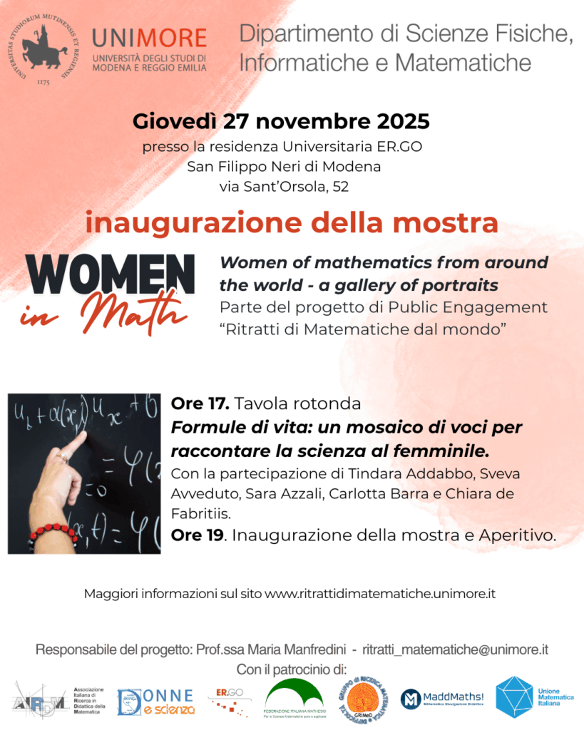 L’evento di apertura della mostra avrà luogo giovedì 27 novembre 2025 presso la Sala “Manifattura” della Residenza Universitaria ER.GO San Filippo Neri, Via Sant’Orsola 52 – Modena a partire dalle ore 17:00.